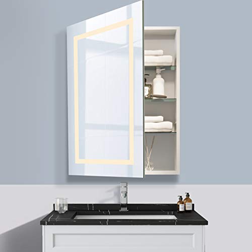 • [WATERPROOF DESIGN]: Our LED medicine cabinet features waterproof and moisture-proof backing, which to ensure lighting in wet bathroom environments. The wire is installed inside the cabinet, which also avoids electric shock.